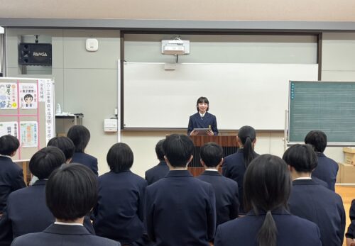 萩警察署の方が来校され、普段は触れる機会の少ない警察の幅広い仕事についてお話ししてくださいました。