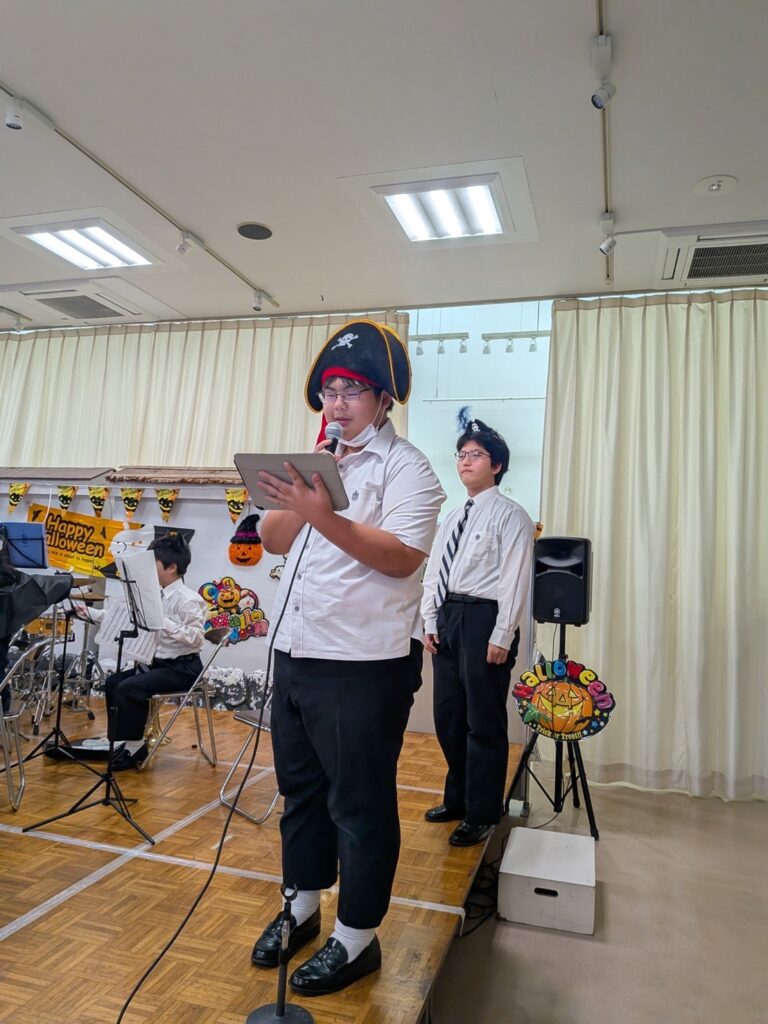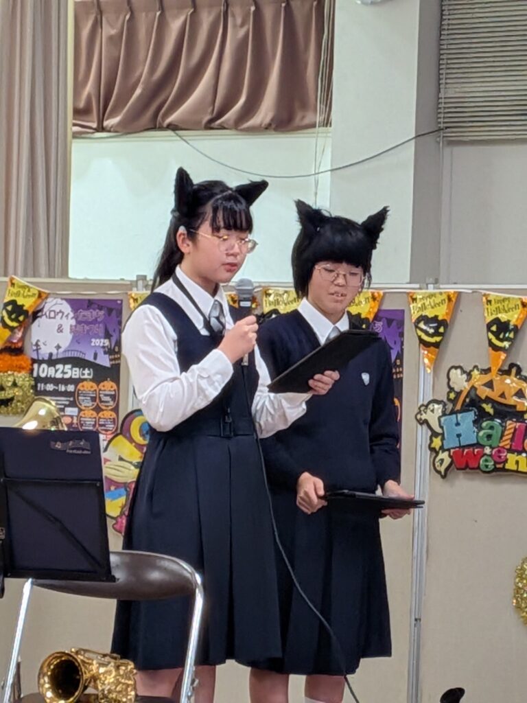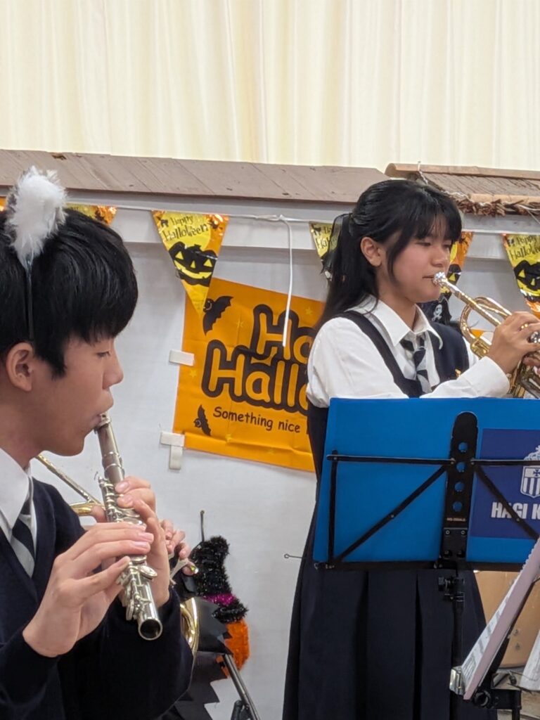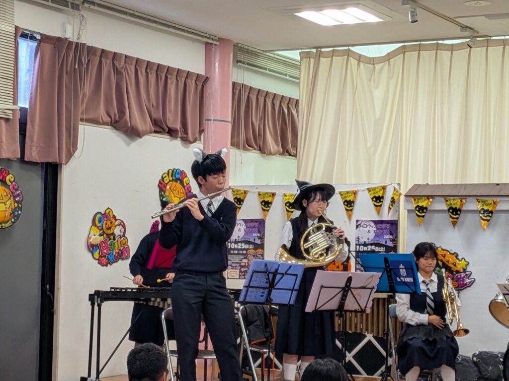 萩市田町商店街で行われた「ハロウィンたまち&結まつり」に、吹奏楽部が参加しました。