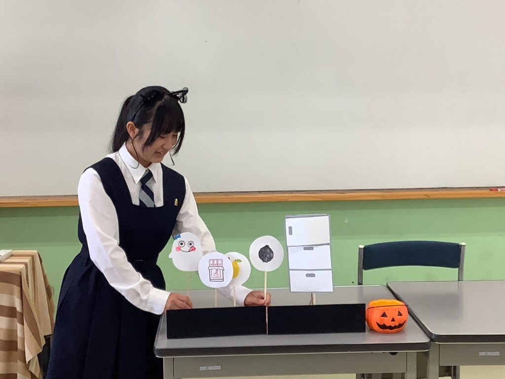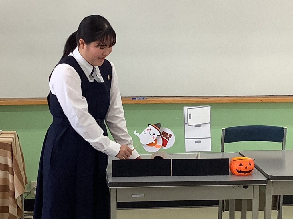 幼児教育研究の授業で、ハロウィン用のペープサートを作りました♪