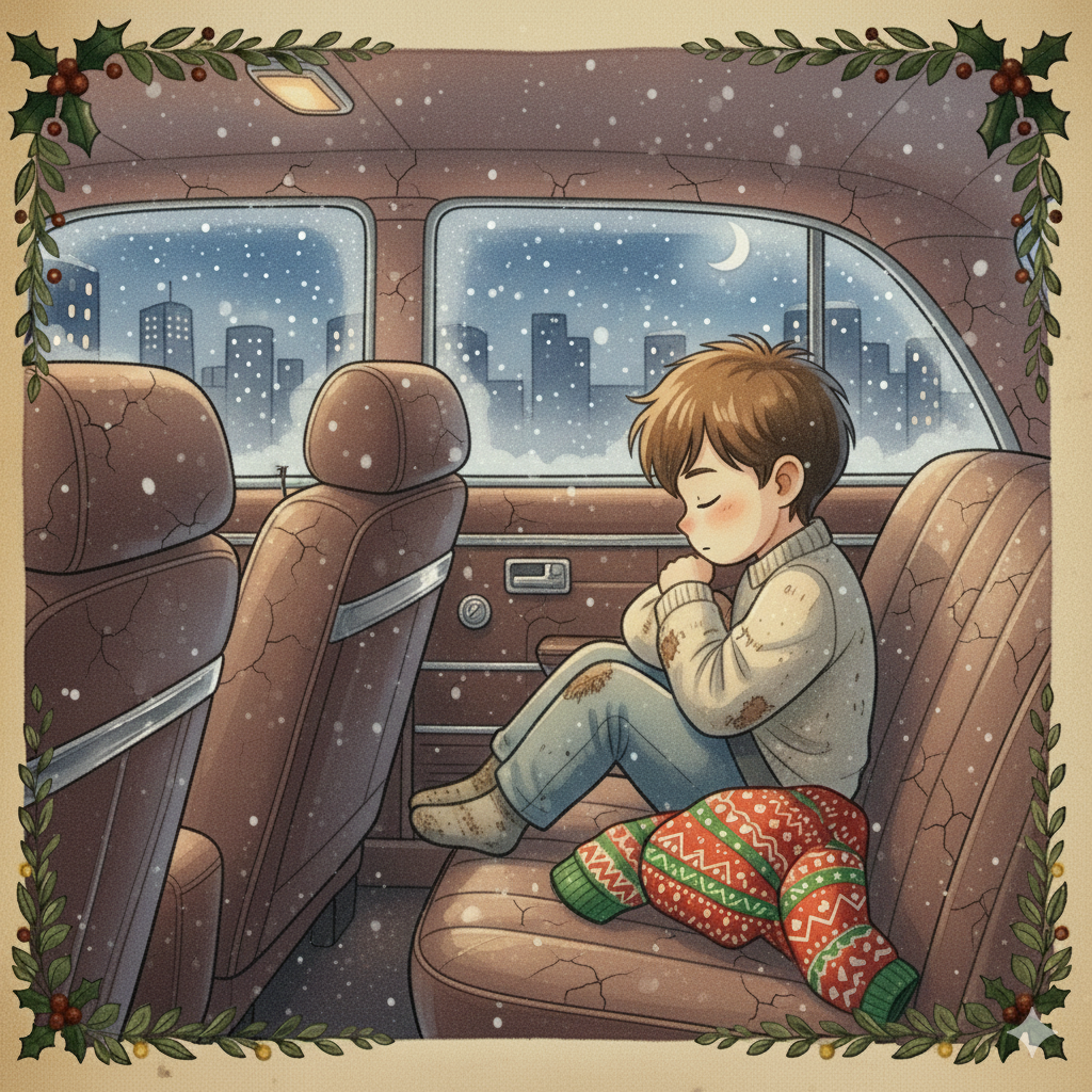 しかしお母さんがくれたプレゼントは手編みのセーターでした。家が貧しいということは分かっているのですが、今年こそは自転車がもらえると思っていたエディはすごく落ち込みました。その日、エディとお母さんは車で片道1時間半かかるお祖父ちゃんの家にクリスマスのあいさつに行きました。でも、お祖父ちゃんの家に行ってもエディの心は晴れず、お母さんの編んでくれたセーターを粗末に扱います。床に放り投げられていたセーターを見てお母さんはとても悲しい思いをしました。