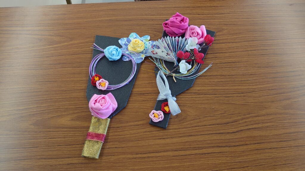 11月、12月は年末年始の小物作りで、個性あふれるすてきなクリスマスリース、羽子板の飾りが出来上がりました。