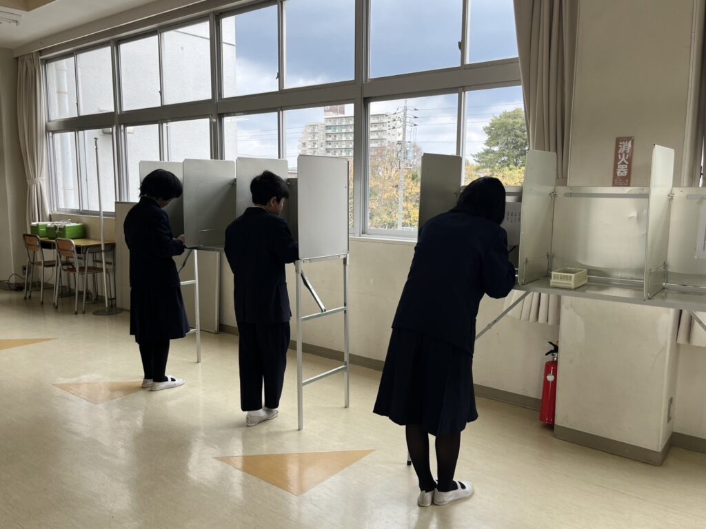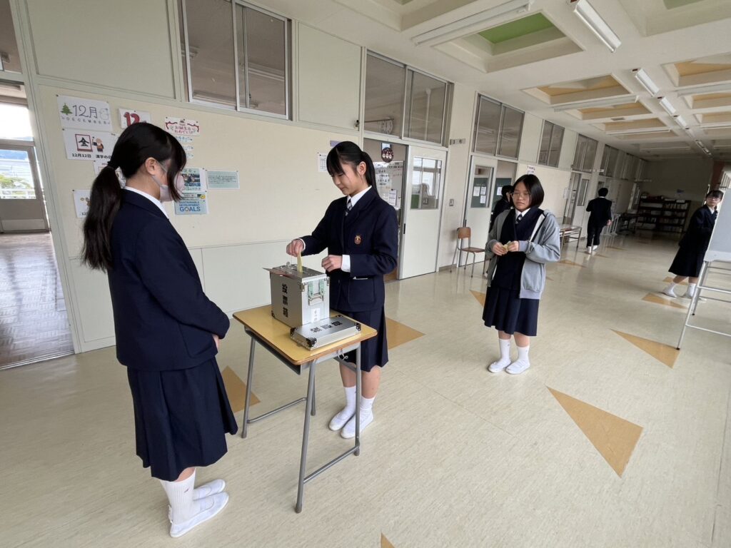 投票の結果、会長は2年の太田さん、副会長は2年の金子さんと1年の山﨑さんに決まりまた。新生徒会は3学期から活動します。
