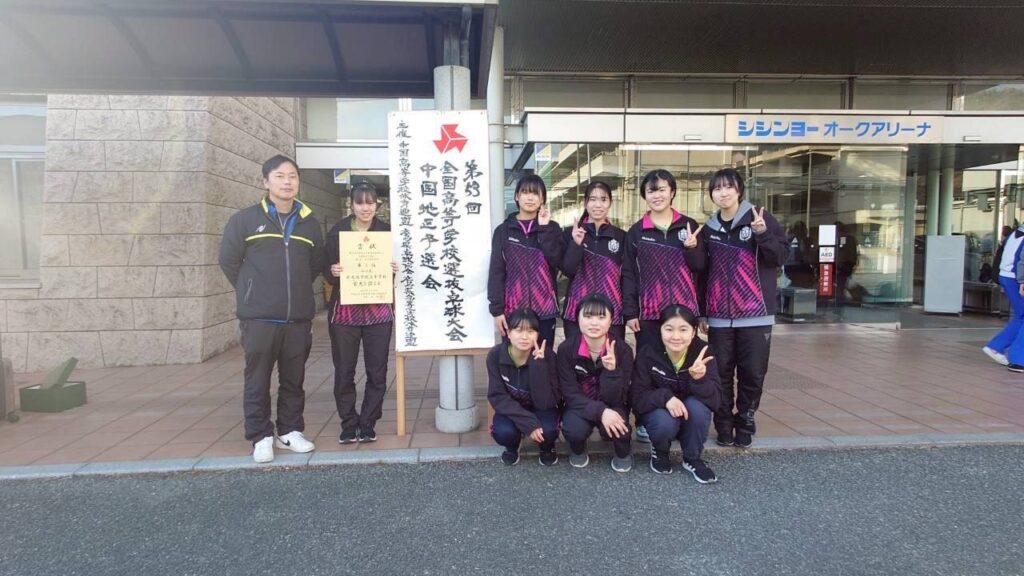 本校卓球部は予選リーグで広島県4位、鳥取県3位にどちらも3-0で快勝し、続く決勝リーグで県内のライバル校にも勝ち、3勝4敗で5位となり2年ぶり5回目の全国選抜大会出場を決めました。