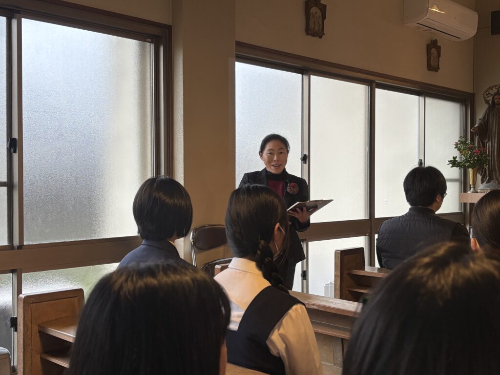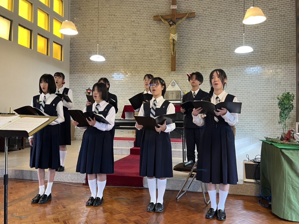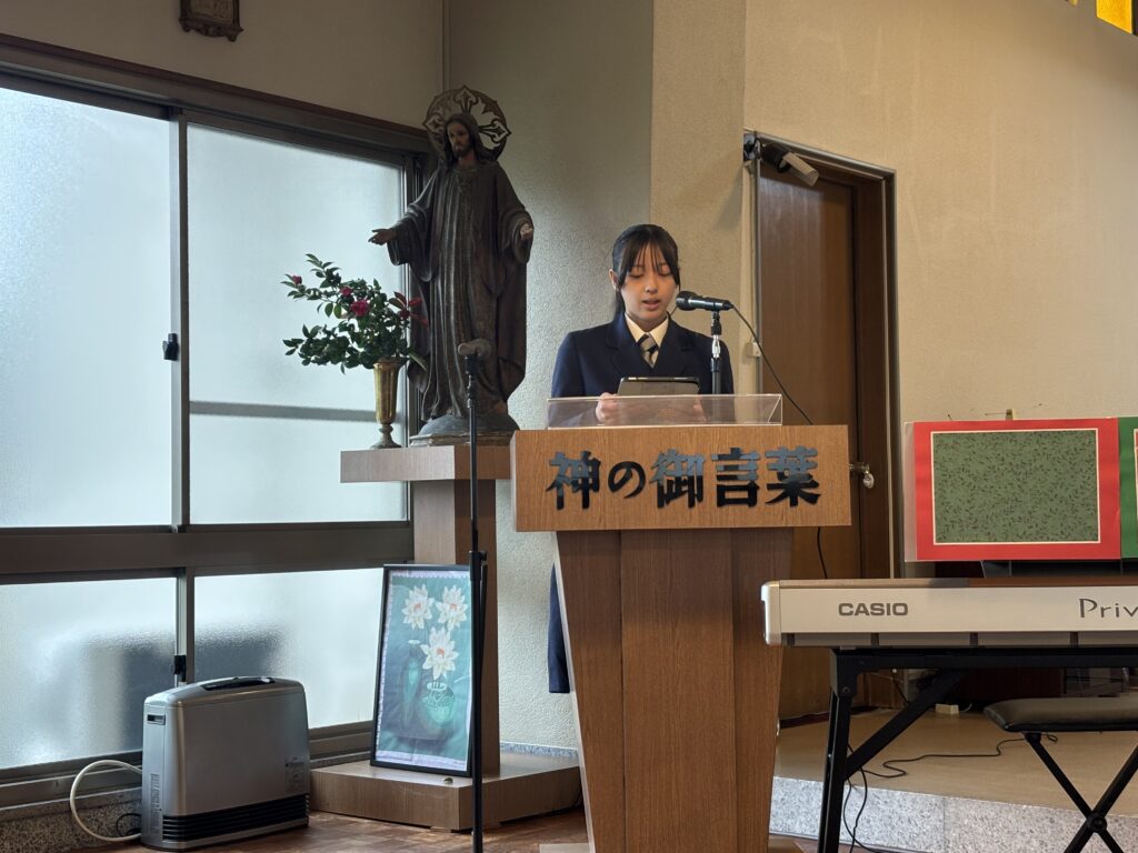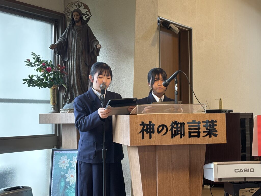 今年のクリスマスメッセージは高3が担当し、聖年の恵みについて英語と日本語で語られました。