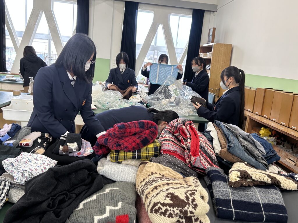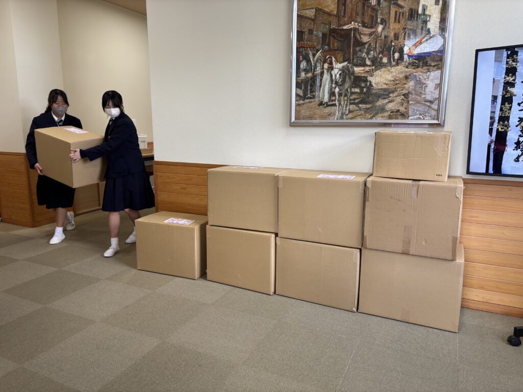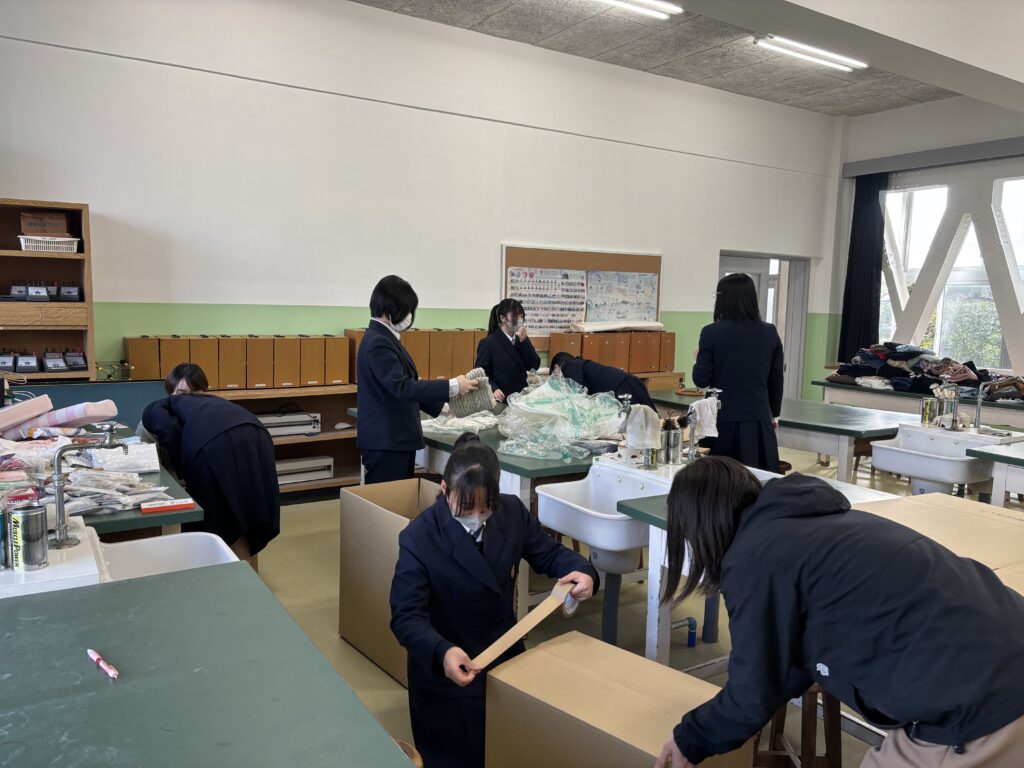 高3の宗教委員が全て梱包し、ダンボール9箱を送りました。