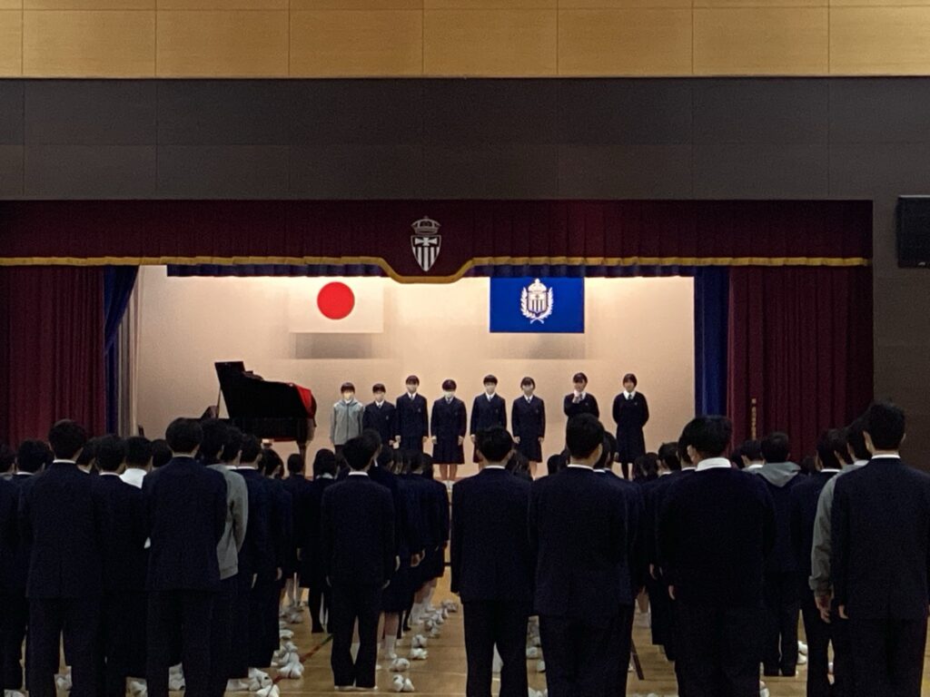 高校女子卓球部と中学校女子卓球部の壮行式を行いました。