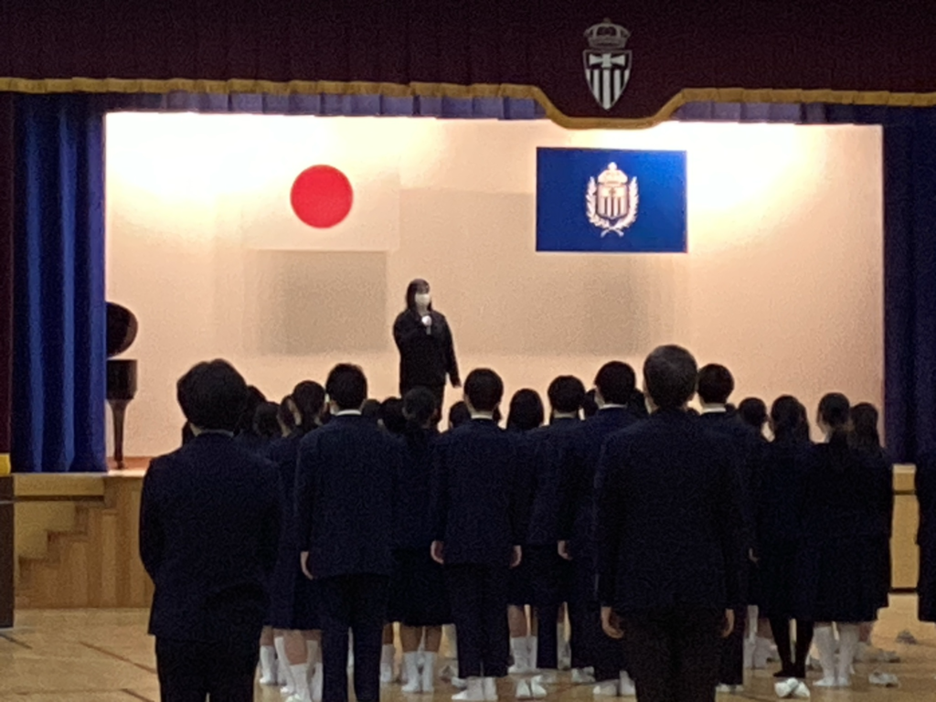 終業式の中で、今年度退職される佐伯充麗先生のご挨拶がありました。