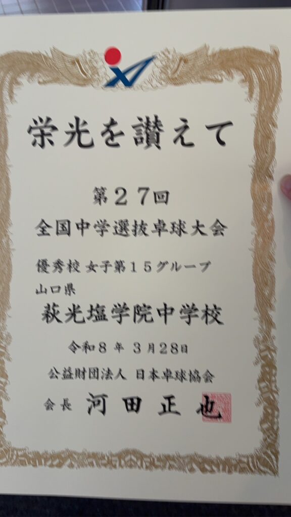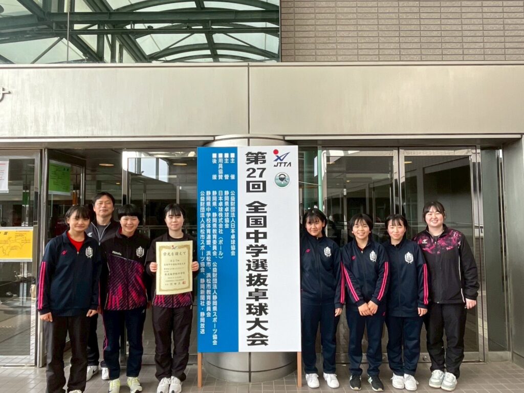 静岡県浜松市で行われた第27回全国中学校選抜卓球大会に学校対抗で初出場しました。