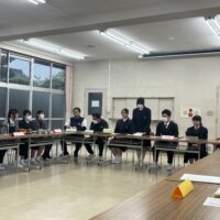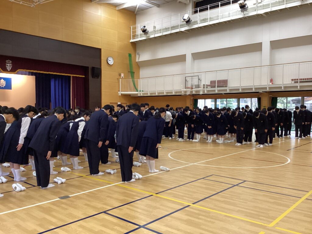 緊張した面持ちの中1、高1と興味津々の先輩たち。これから一緒に学院を盛り上げていってください。
