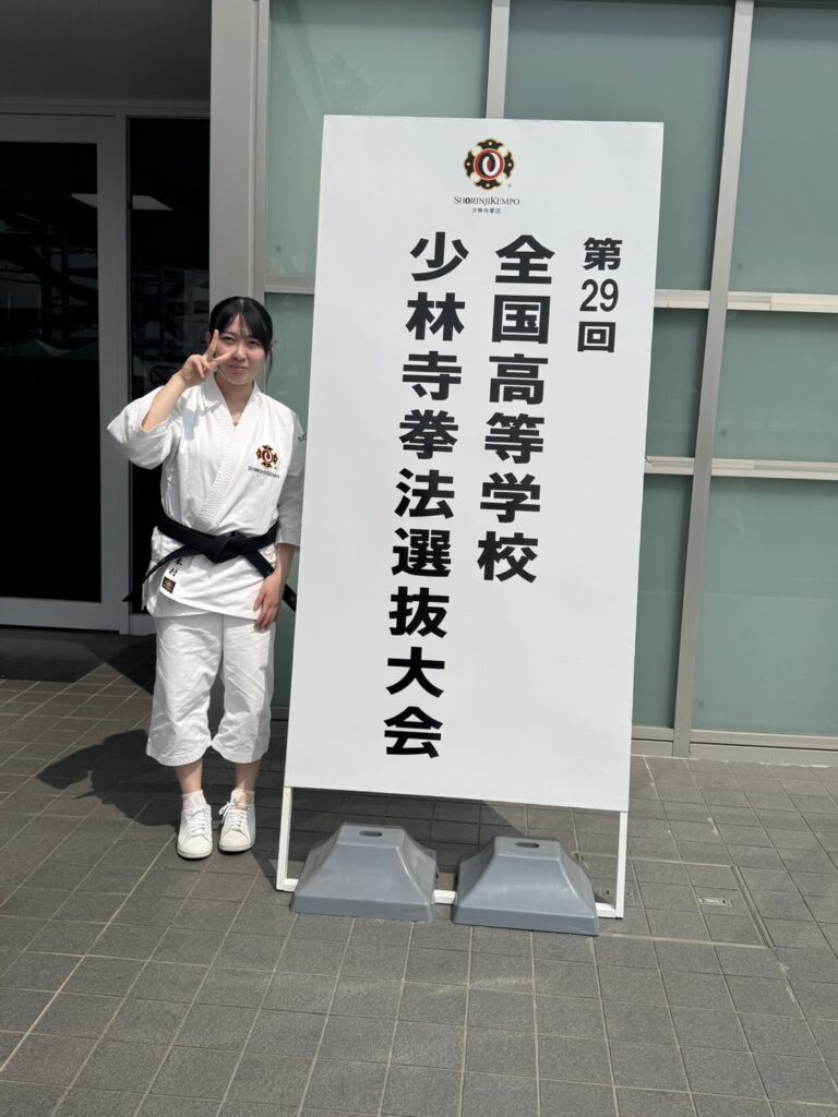 春休みに香川県善通寺市で開催された「第29回全国高等学校少林寺拳法選抜大会」に、高3の木村さんが出場しました。