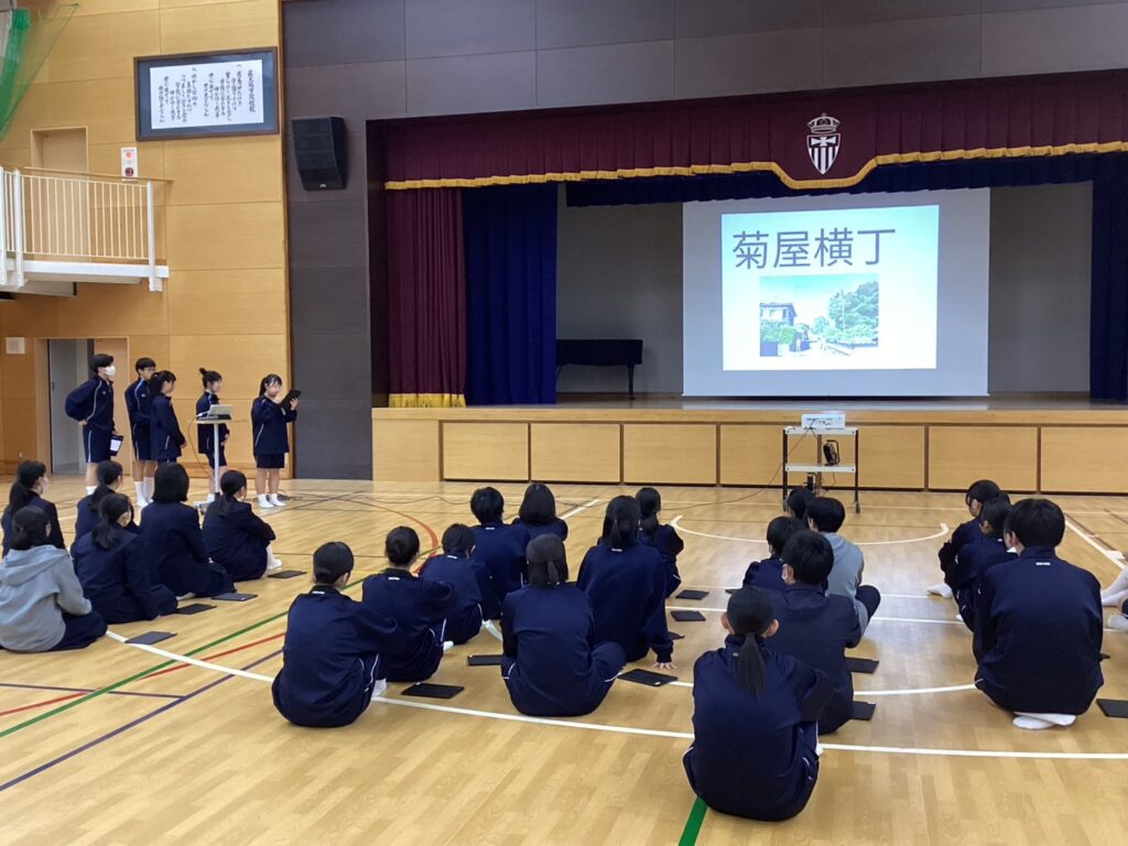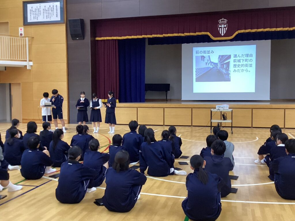 散策後の発表会では、「この景色のここが一番きれいだった!」「萩の歴史を改めて身近に感じた」といった各グループ独自の視点で萩の魅力をプレゼンテーションし、仲間と意見を出し合い一つの形にまとめ上げることで、クラスの絆もより一層深まりました。