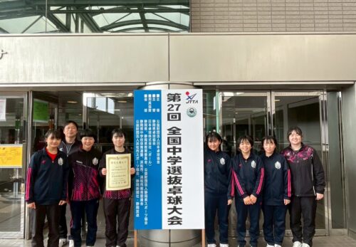 3/28(土)〜3/29(日) 中学校女子卓球部 全国ベスト16入り