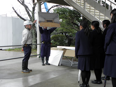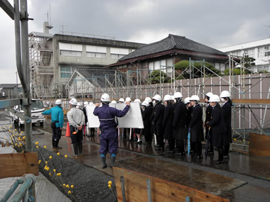 大成建設の方から体育館の工事についての説明と見学会が行われました。