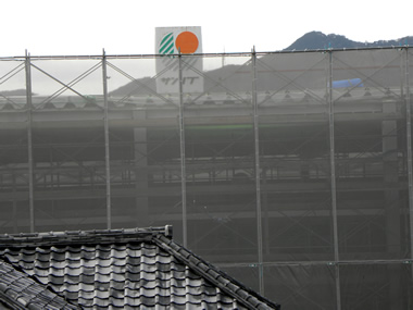 サンリブ側の足場が外され、外壁が見えています。
